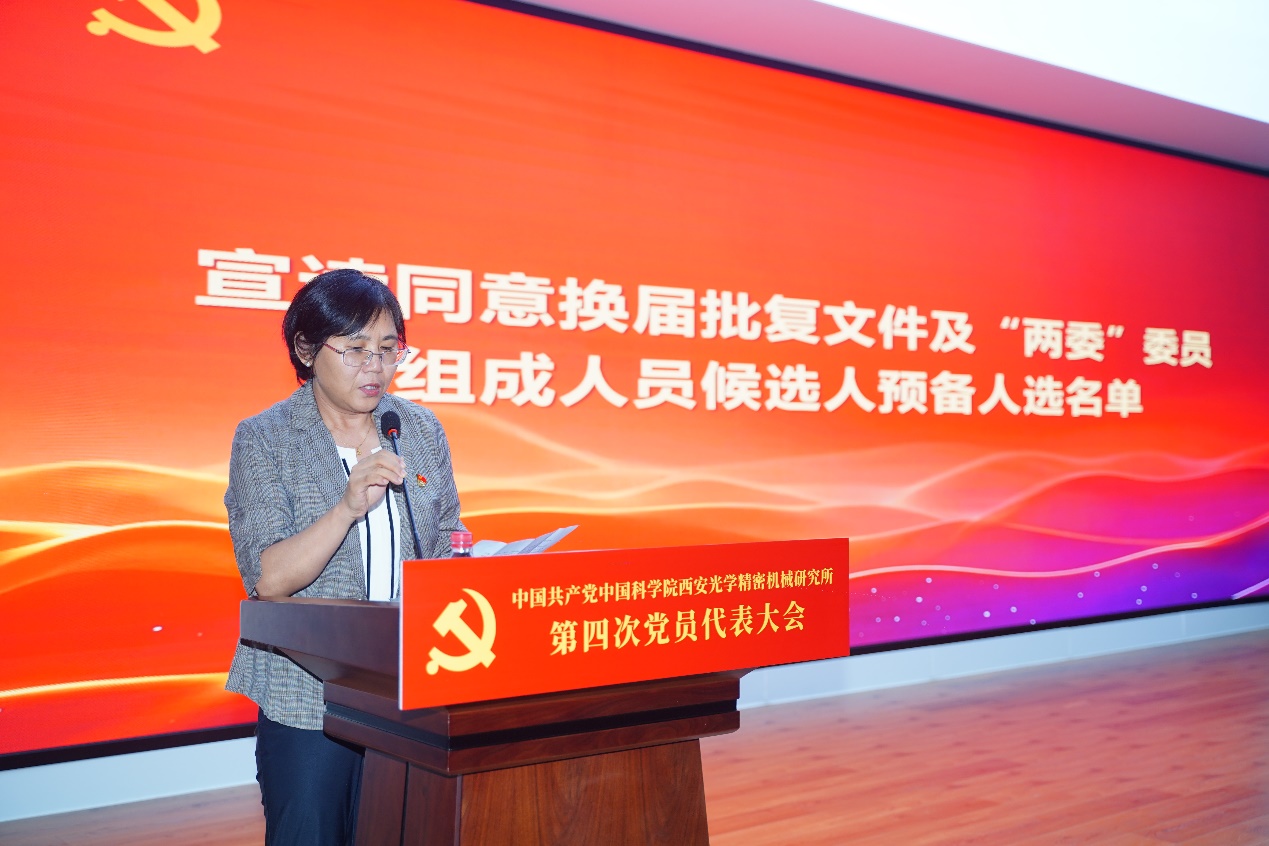 9月8日,中國共產黨中國科學院西安光學精密機械研究所第四次黨員代表大會在祖同樓報告廳舉行,選舉產生中共中國科學院西安光學精密機械研究所第十二屆委員會和第十一屆紀律檢查委員會。全所黨員代表參加會議,會議還邀請了中國科學院院士、西安光機所原所長侯洵,原黨委書記武文斌,原黨委副書記劉書龍,研究所總會計師楊正科,無黨派人士汶德勝、李華、蘇秀琴、曹劍中、田進壽、劉百玉,全國人大代表、民建陜西省委常委胡炳樑,民革黨員吳萌源,民盟盟員毛祥龍,九三學社社員汪偉,農工黨黨員王先華等列席會議。中國科學院西安分院分黨組書記、系統黨委書記詹瑞,西安分院系統紀委委員、黨建工作處處長楊文正,西安分院黨建工作處陳立到會指導。